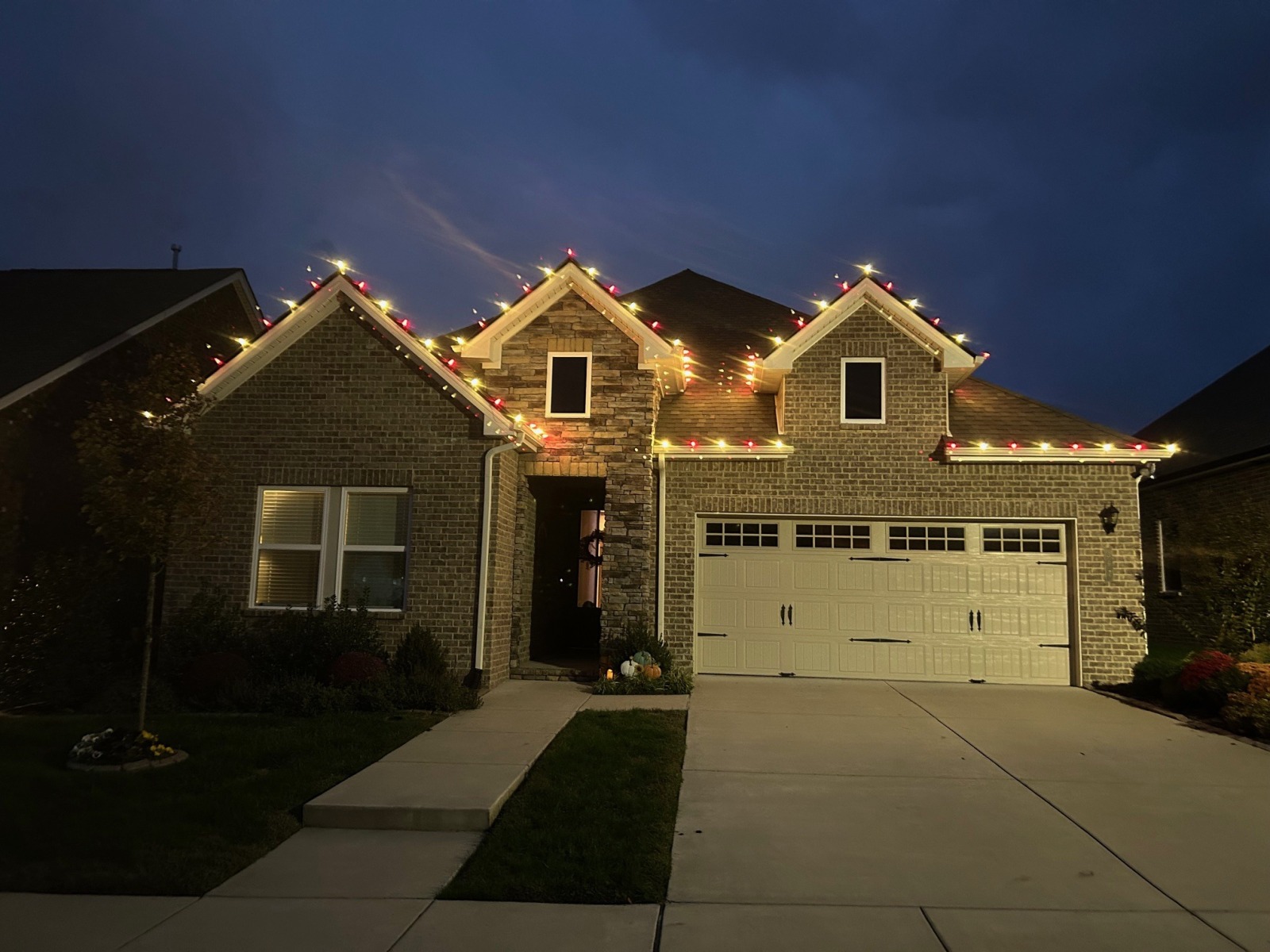 Saturday the clock said Santa time. Charlie began taking Santa pictures, it will run through the Sunday after Thanksgiving. I haven’t pulled out a decoration yet, but we did have lights hung outside! When the neighbors saw the lights they all signed up too. The company is Tender Tennessee Christmas and it is the best price ever, $350 to put up and take down. Here are a couple pics!