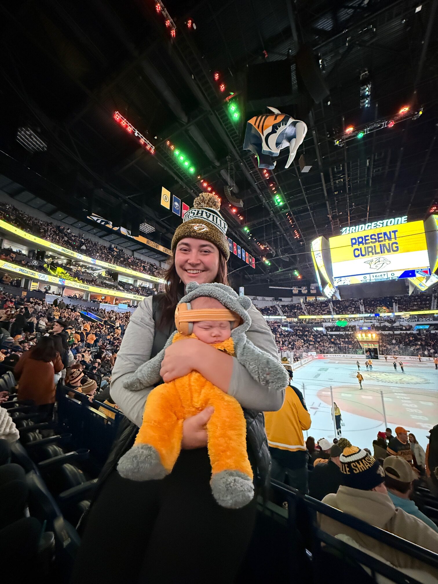 Alex is in town and we are all enjoying Mabel time. Can’t wait for Christmas Day to see Mabels’s excitement when she unwraps her presents!! Alex treated Mabel to her first hockey game last night complete with her Predator’s snow suit!