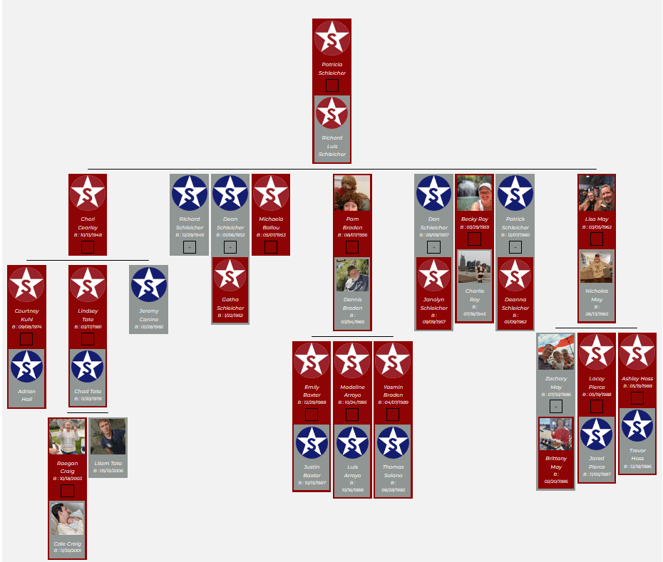 The family tree has also gotten some refinements, mainly with standardization of photo placeholders as well as adding in member images. Images included in Boar Reports are archived and tagged as I get timed and will show up under the member’s tree card.