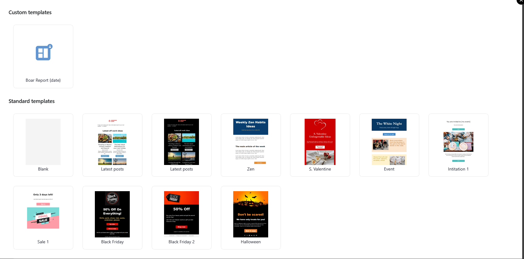 I’ve already created a weekly Boar Report template that adds a title and the current date; select the template. Once the template is selected, unless you want to add something to this week’s letter, you can just hit “Next”.